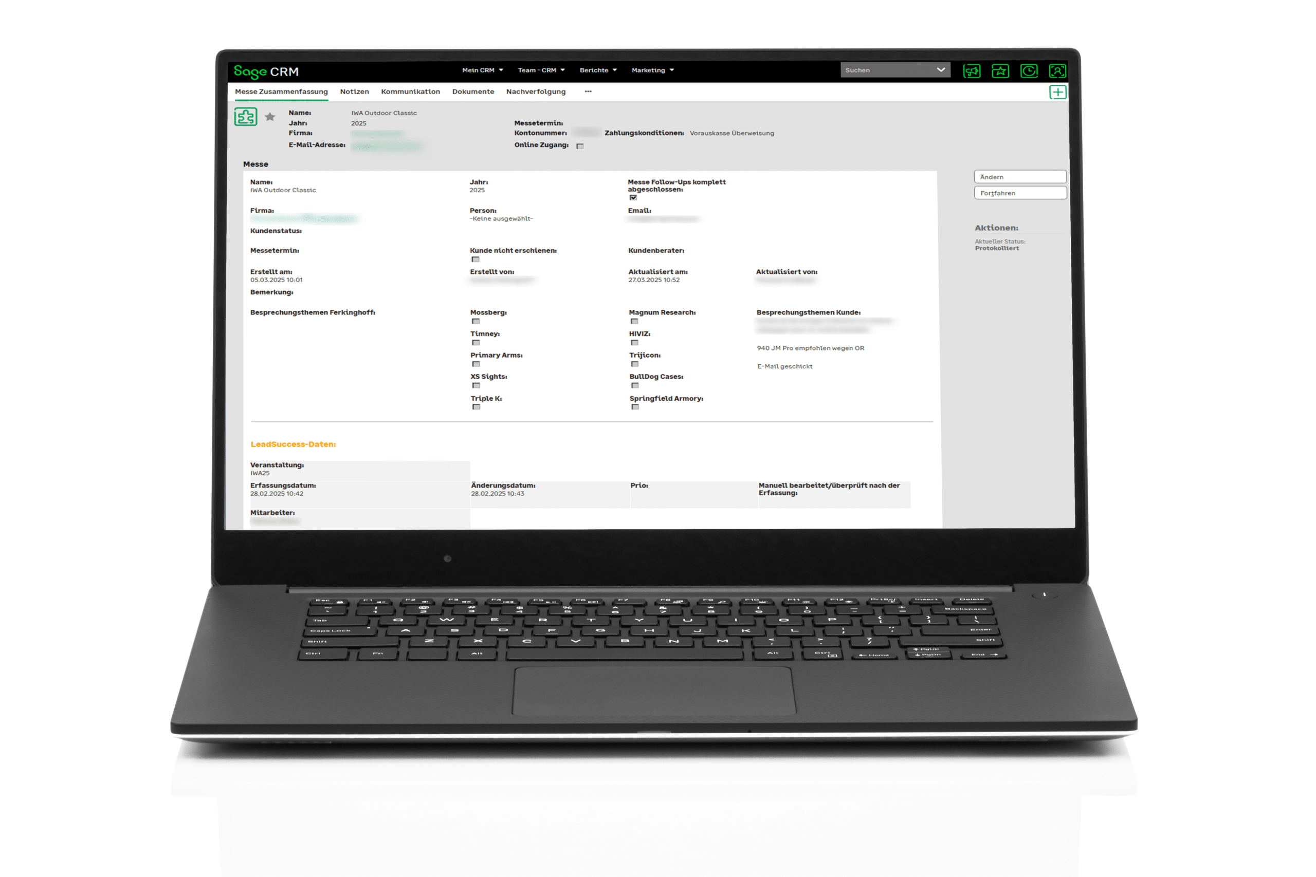 Das CRM wird während des Messezeitraums über mobile Hotspots direkt vor Ort genutzt. Dadurch stehen alle Kundeninformationen auch während der Messegespräche zur Verfügung, und zusätzliche Kontakte sowie Leads können in Echtzeit erfasst werden.